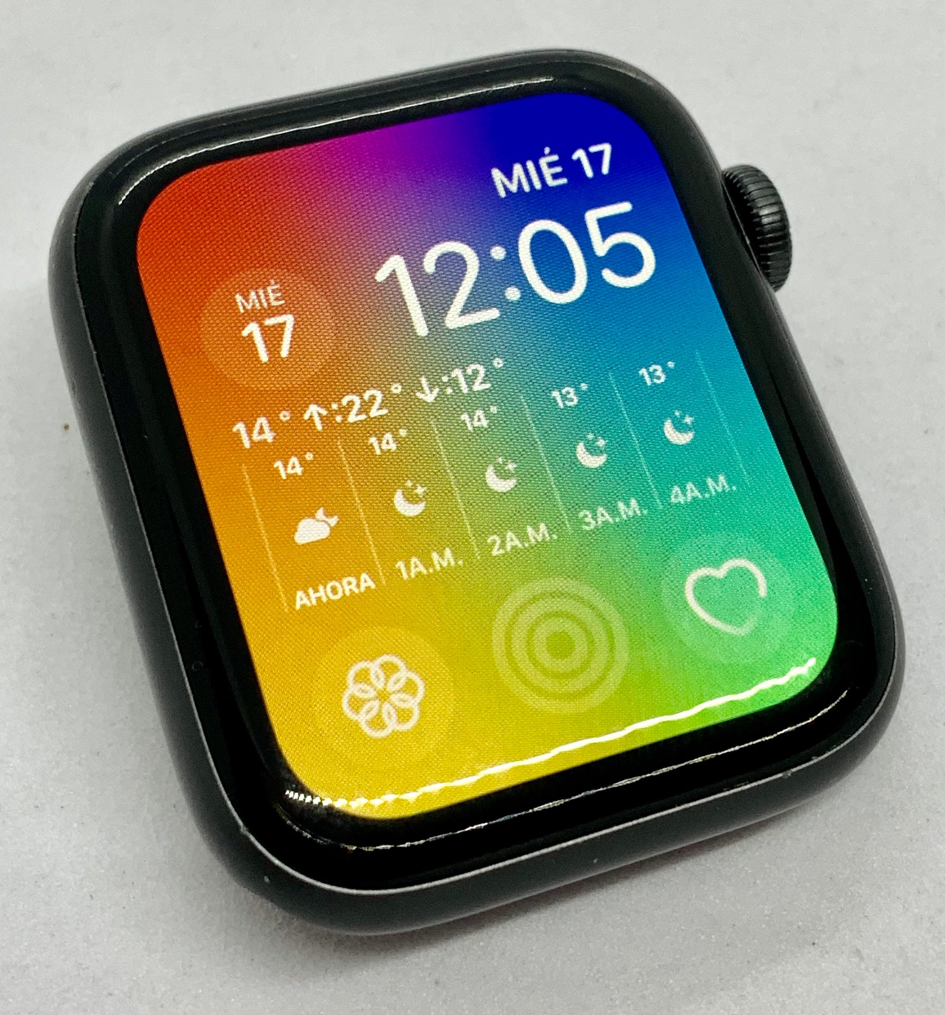| Este Apple Watch series 5 de 44 MM viene con una pantalla de 368 x 448 pixeles, una batería de iones de litio recargable la cual dura hasta 18 horas. Funciones como un sensor de frecuencia cardiaca, altímetro y resistencia al agua. La pantalla del reloj tiene un lunar en el centro este es casi imperceptible, y las orillas del reloj tienen la pintura desgastada por el uso, el resto esta en perfecto estado y con excelente funcionamiento. Incluye una correa base + correa extra y cargador. No incluye caja. Porcentaje de calidad de batería al 82% |
