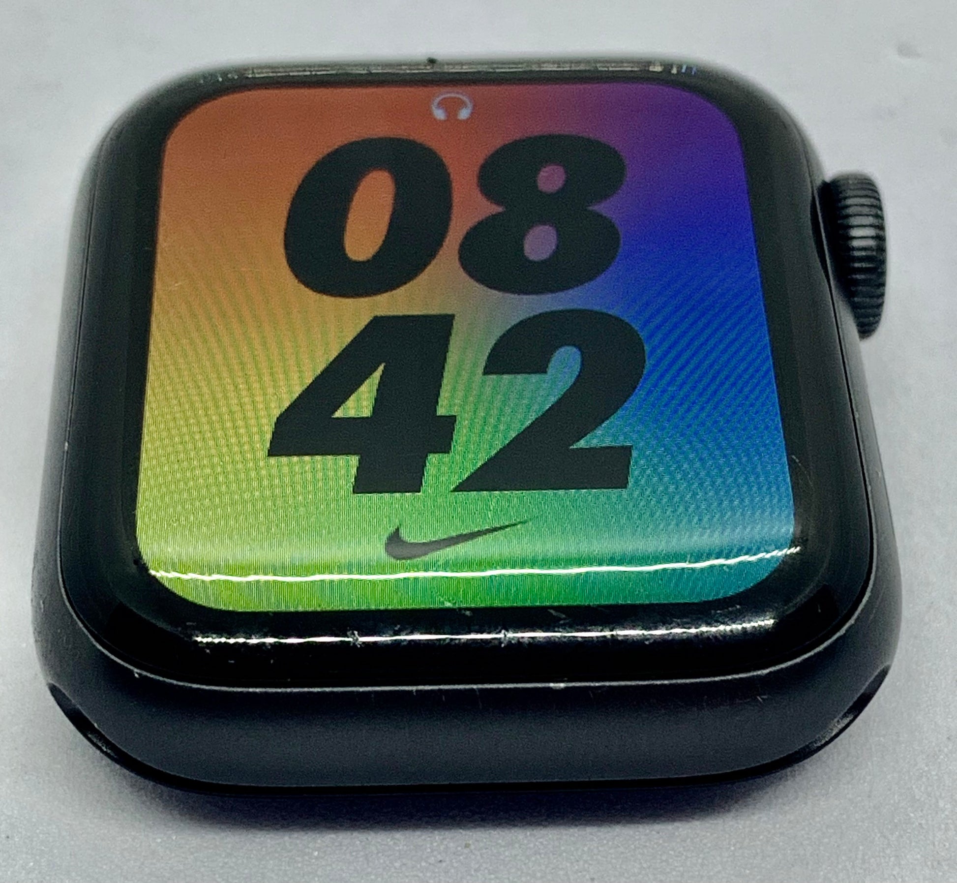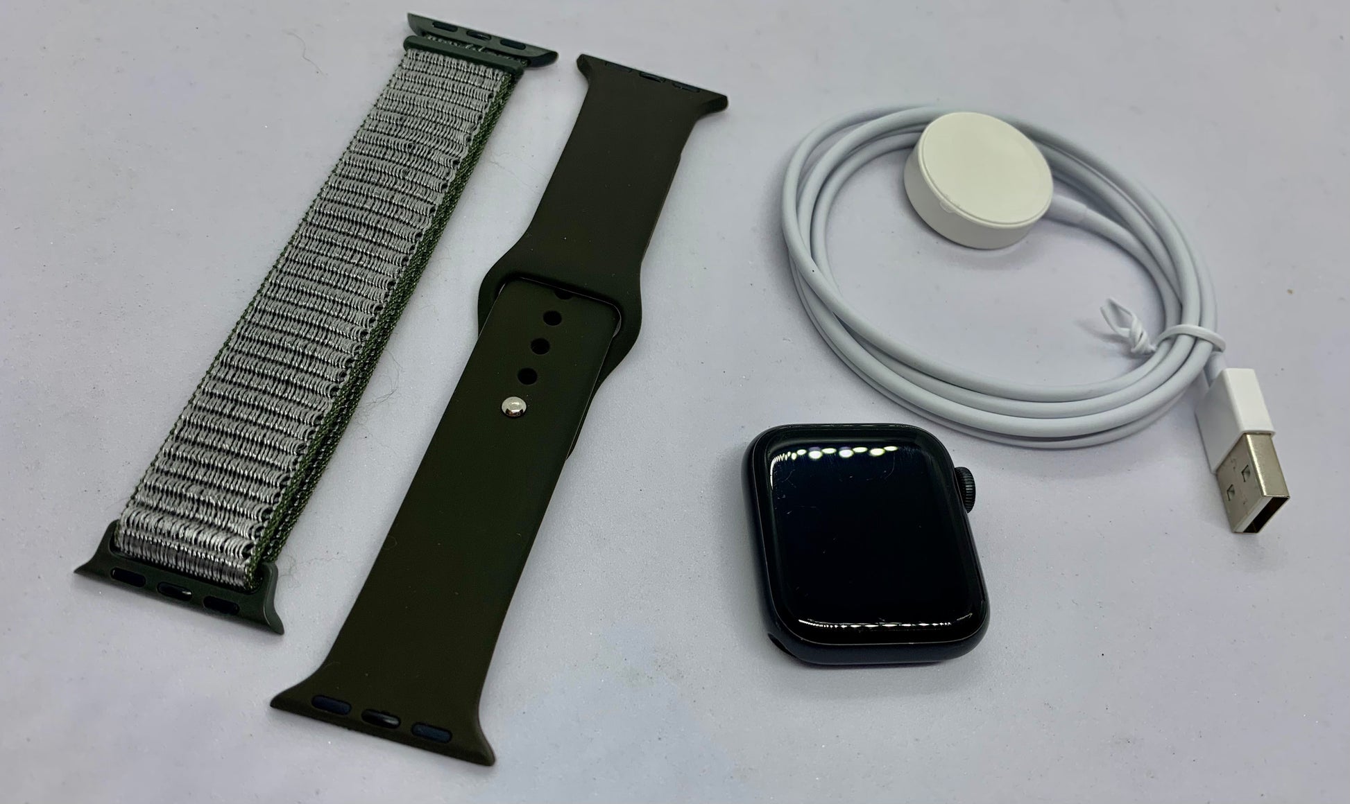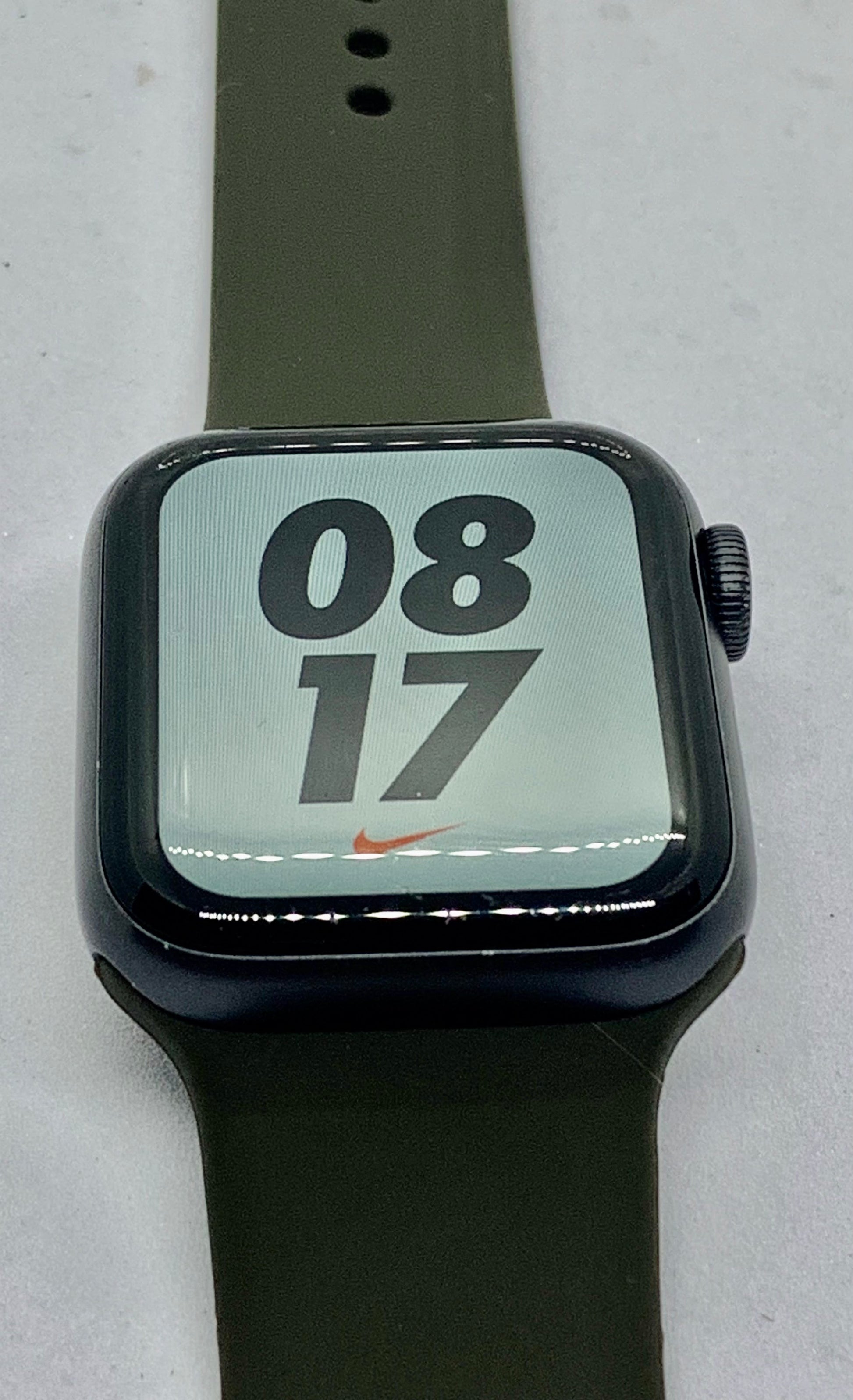 | Este Apple Watch series 5 de 40 MM con el exterior space gray y viene con una batería con hasta 18 horas de duración. El chip incluido es uno con un procesador de 64 bits, GPS, LTE y bluetooth. Incluye un acelerómetro, sensor eléctrico de frecuencia cardiaca y resistencia al agua. La pantalla del reloj tiene rayones diminutos que se ven a simple vista, mas el resto del reloj esta en perfecto estado. Incluye correa base + correa extra y cargador. No viene con caja. Porcentaje de batería al 85% |