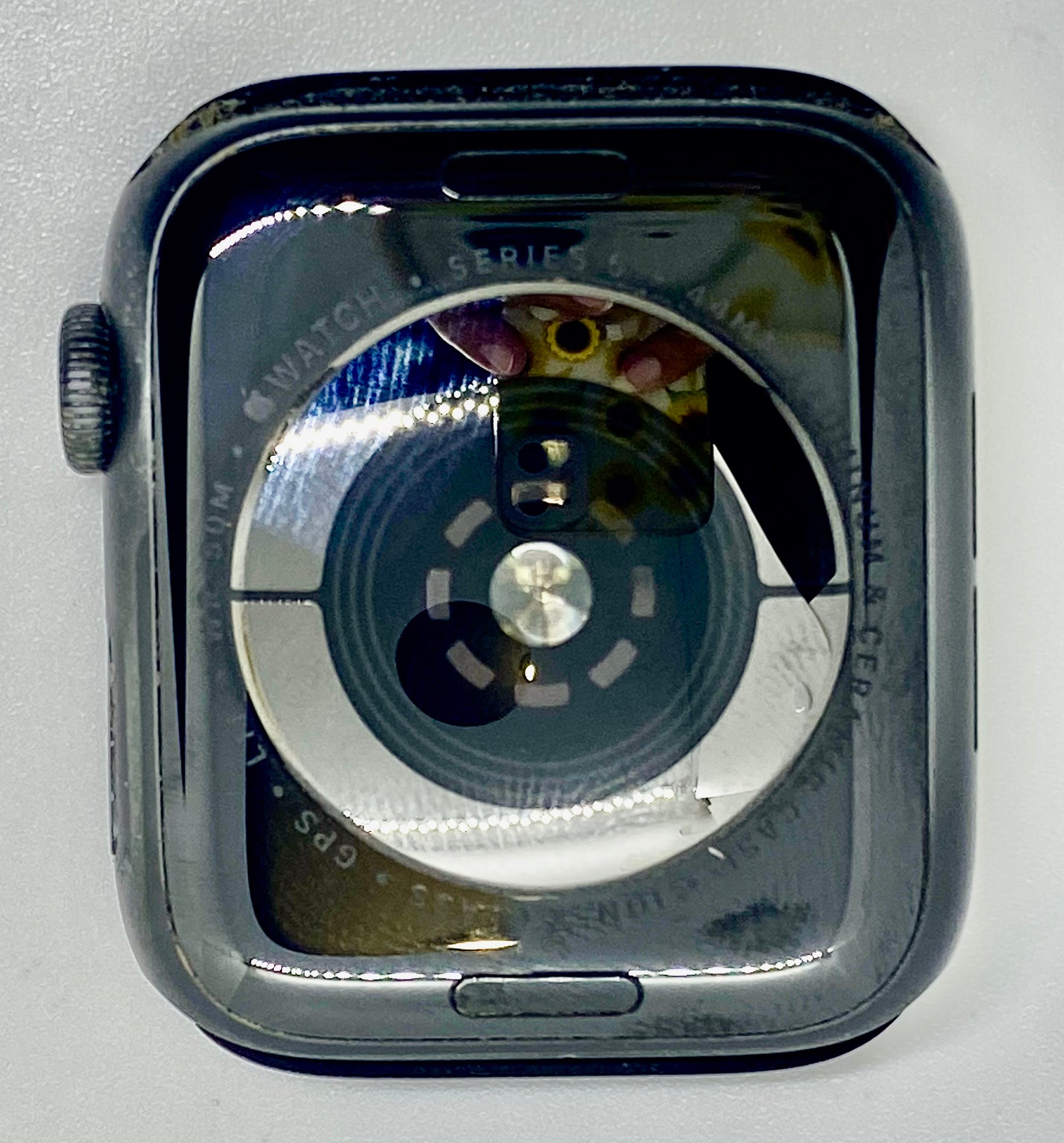 Este Apple Watch series 5 de 44 MM color Space gray, Incluye 2 correas, cargador original. La pantalla de este reloj esta en muy buenas condiciones a simple vista no se aprecian marcas y si aumentamos luz tal vez podamos encontrar una que otra huella como muestra del uso de este reloj, en los laterales si hay bastante desgaste de la pintura de los exteriores, un Case podria ayudar a disimularlo. |